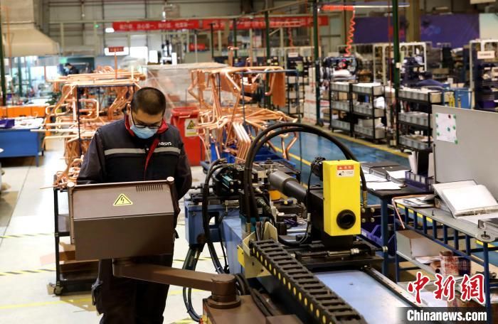 中新网廊坊5月3日电(宋敏涛 杨雅淇)3日,河北省固安县阿尔西环境科技有限公司的生产车间内,9条制冷设备生产线正满负荷运转,原料冲压、折弯、喷涂、焊接,每道工序都紧张有序进行。“公司的订单量已经排到六月底,一季度产值和去年同期相比大概提升了45%左右。”固安阿尔西环境科技有限公司制造部总监齐笑说。