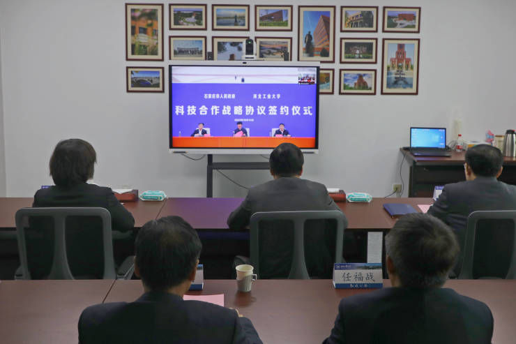 10月18日消息,搜狐焦点获悉,10月14日下午,河北工业大学与石家庄市政府以视频会议的形式举行了科技合作战略协议签订仪式。校党委书记韩旭、石家庄市市长马宇骏见证签约并致辞,副校长郎利影、副市长李为军代表双方签订了合作协议,副校长马国伟、石家庄市常务副市长刘军志出席活动。
